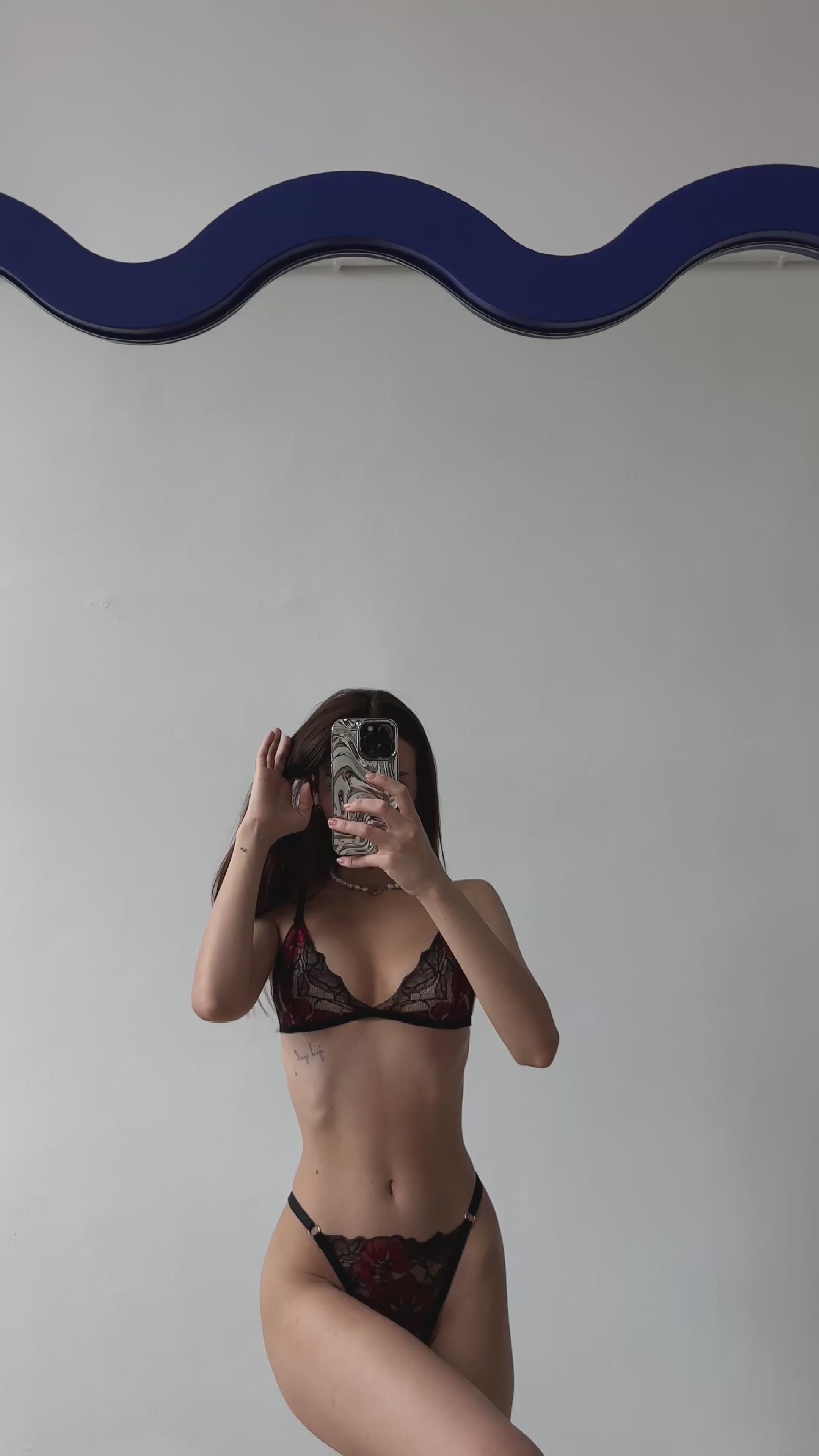 Луксозен комплект “Marietta” – стил и съблазън в перфектна комбинация. Сетът включва сутиен с мека чашка и прашка, изработени от фина черна дантела с деликатни червени флорални мотиви. Регулируемите презрамки осигуряват комфорт и прецизно прилягане към всяка фигура.